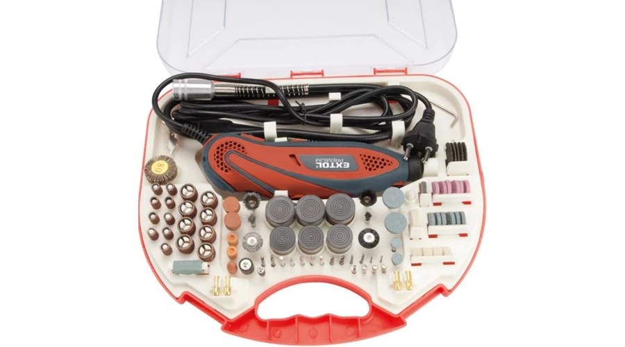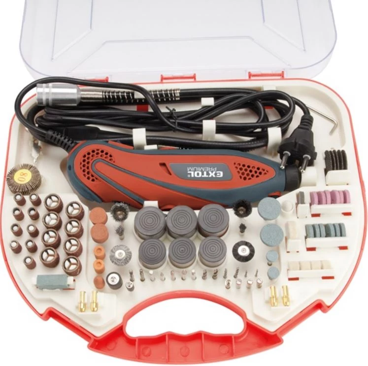 Tartozékok: 210db-os fej klt. csiszoló, polírozó, fúró, vágó stb. (befogás: 1,6mm +2,3mm ×2 +3,2 mm befogópatron)